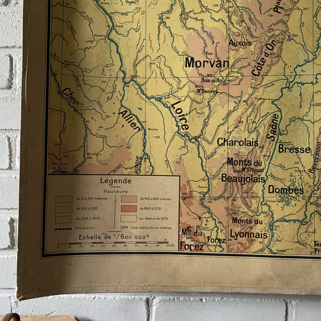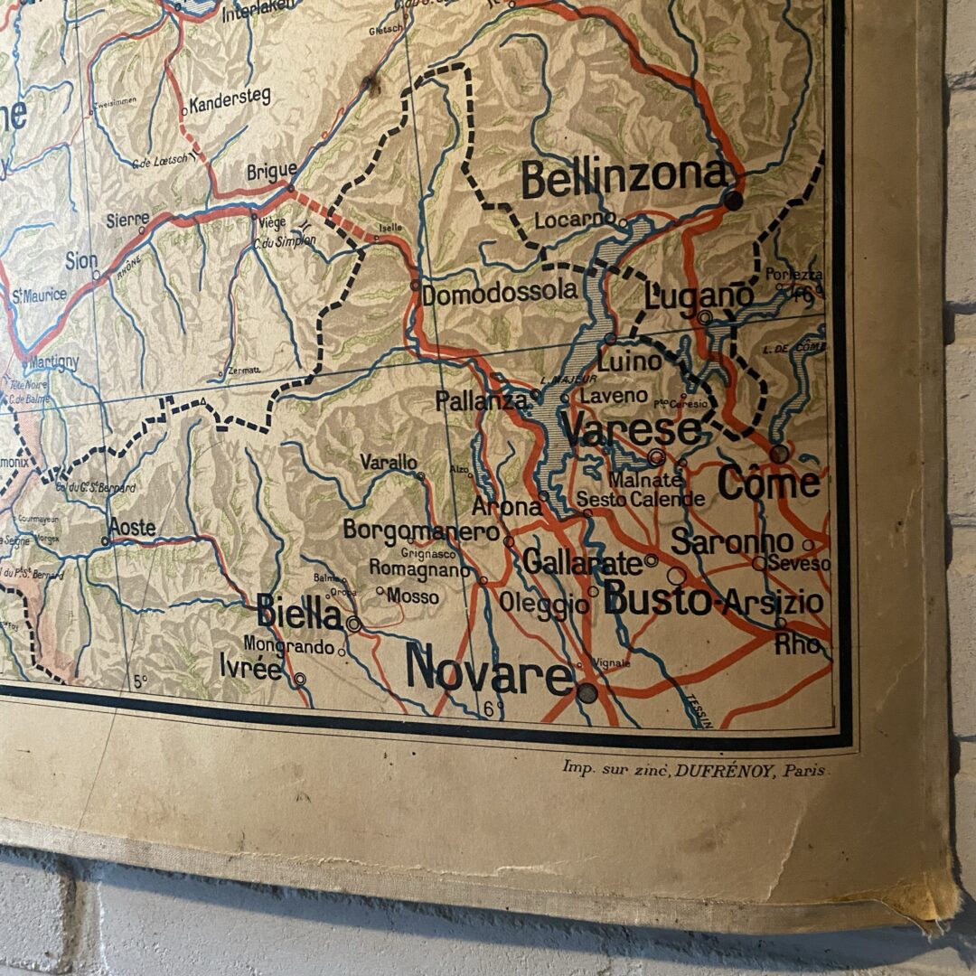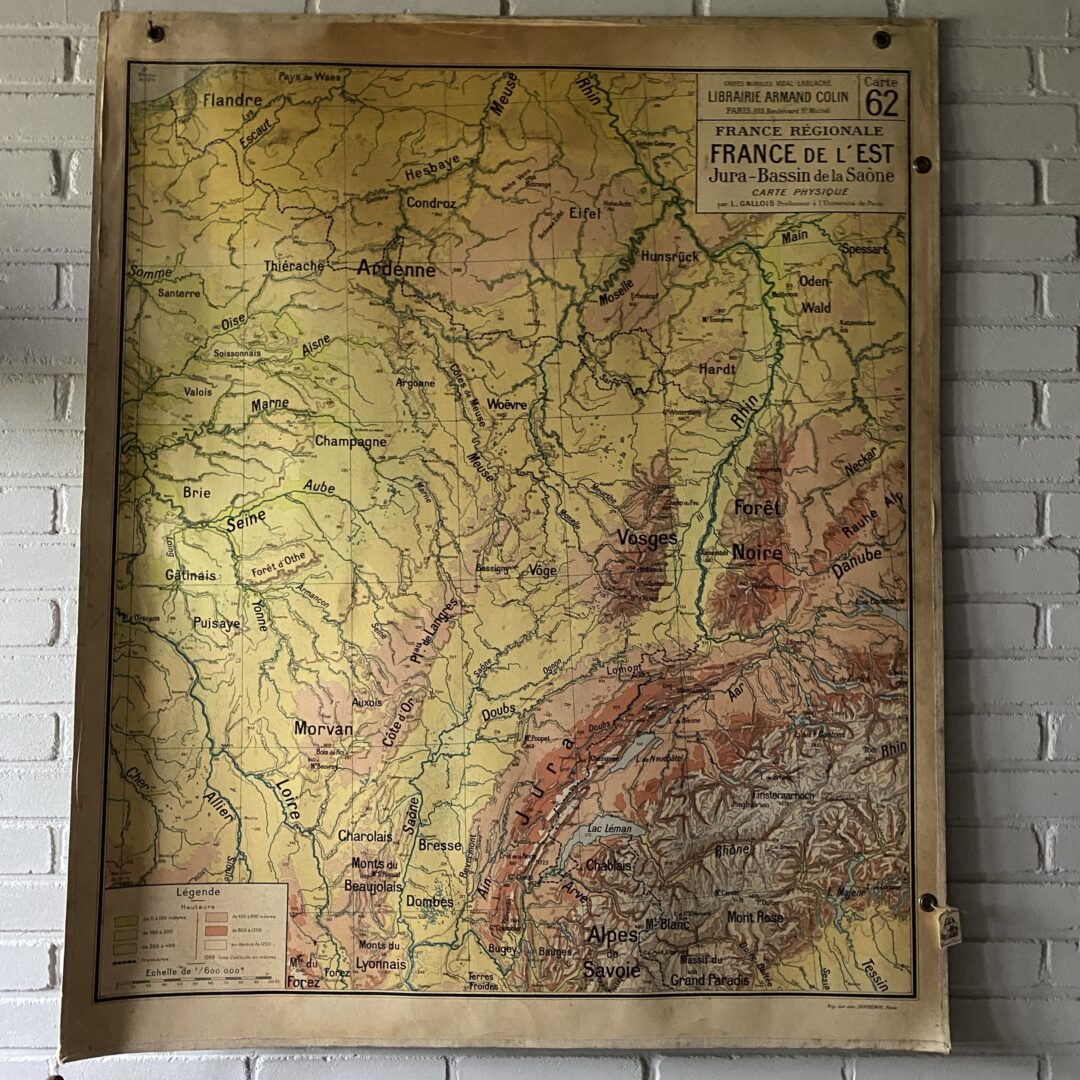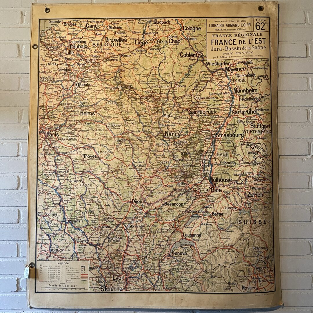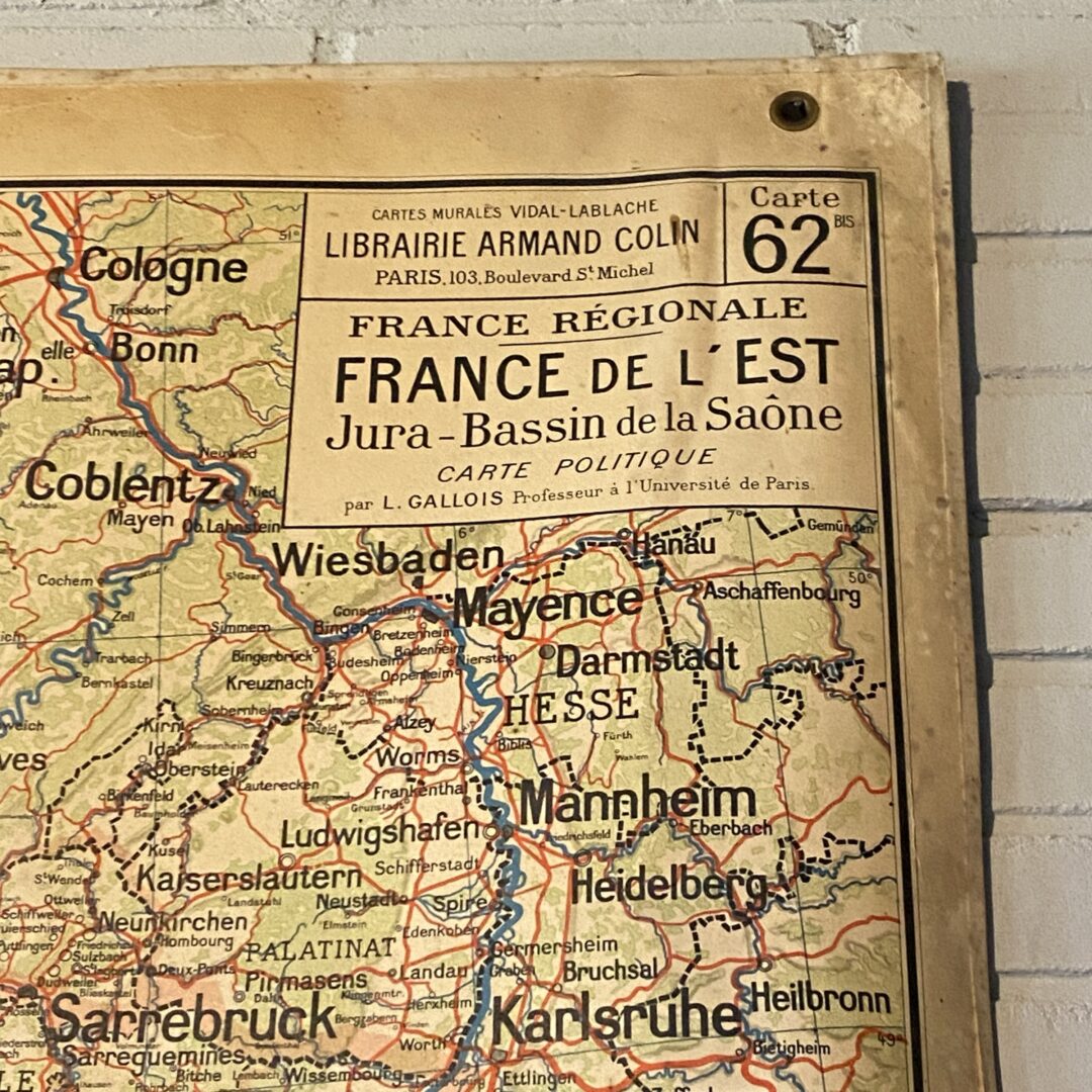 Mooie oude grote dubbelzijdige schoolkaart / schoolplaat Carte 62 France de l’Est