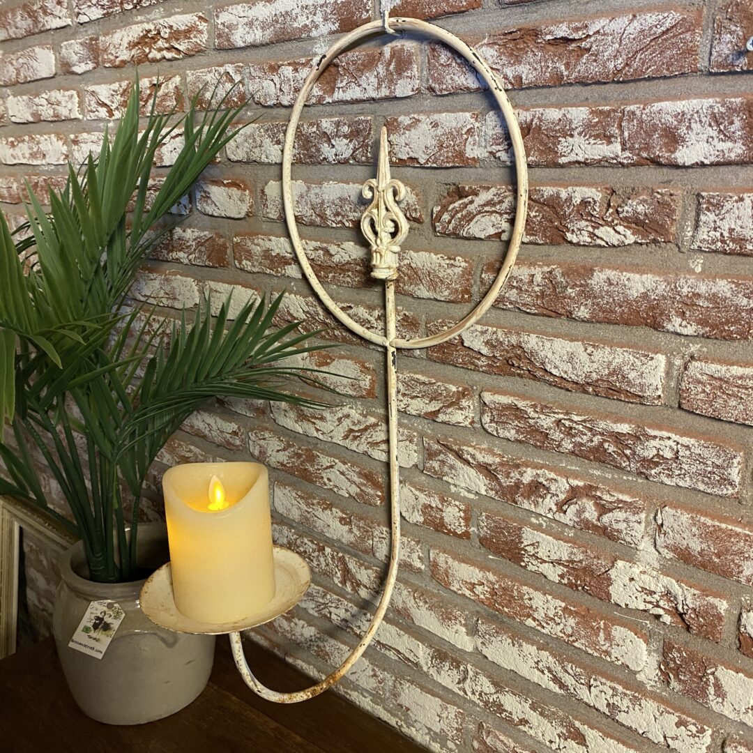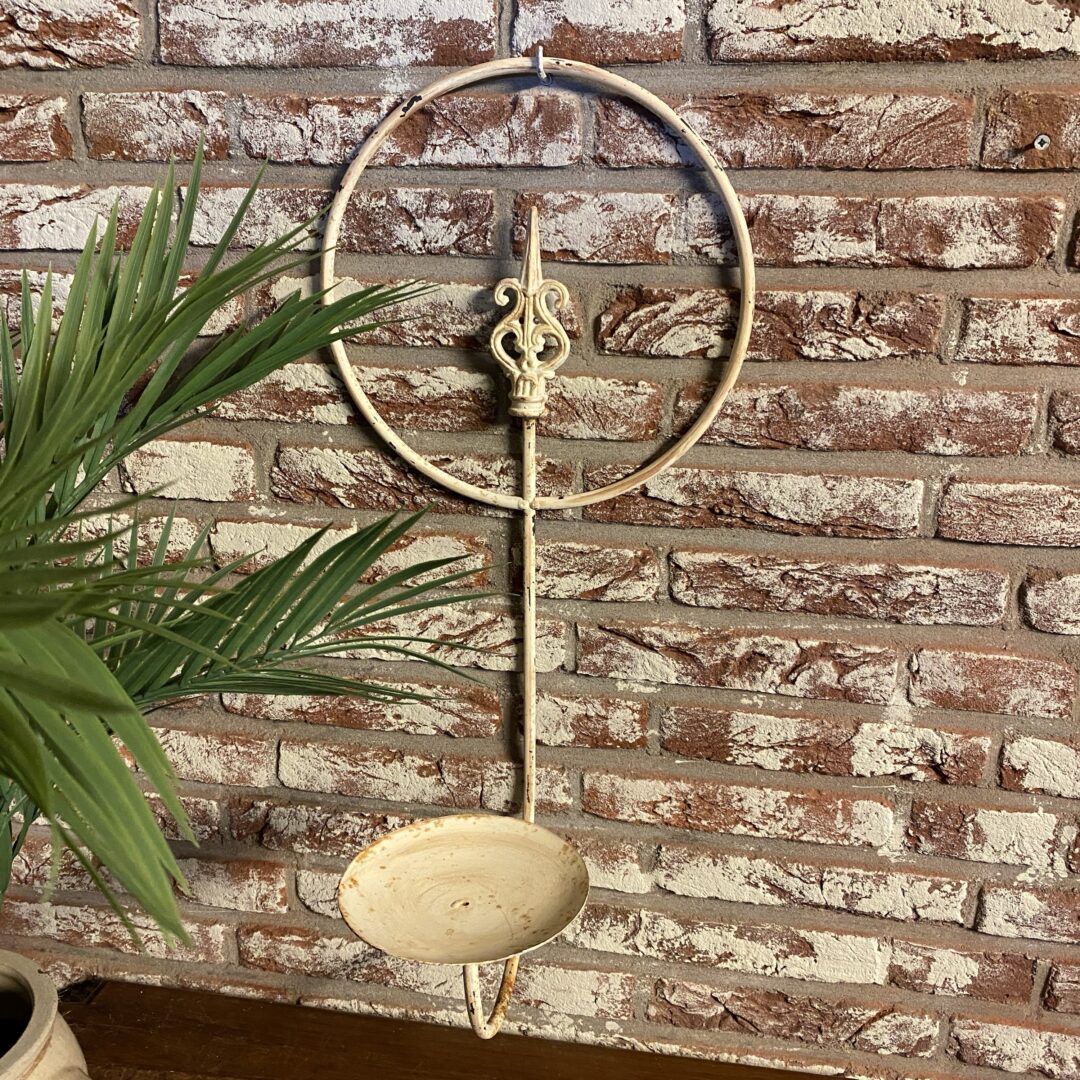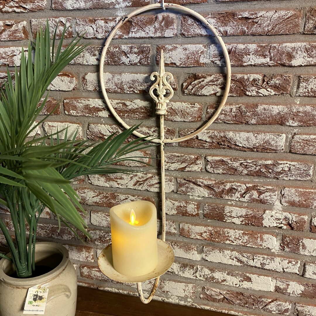 Superleuke metalen kaarshouder aan de wand met kaars of plant… zowel binnen als buiten.