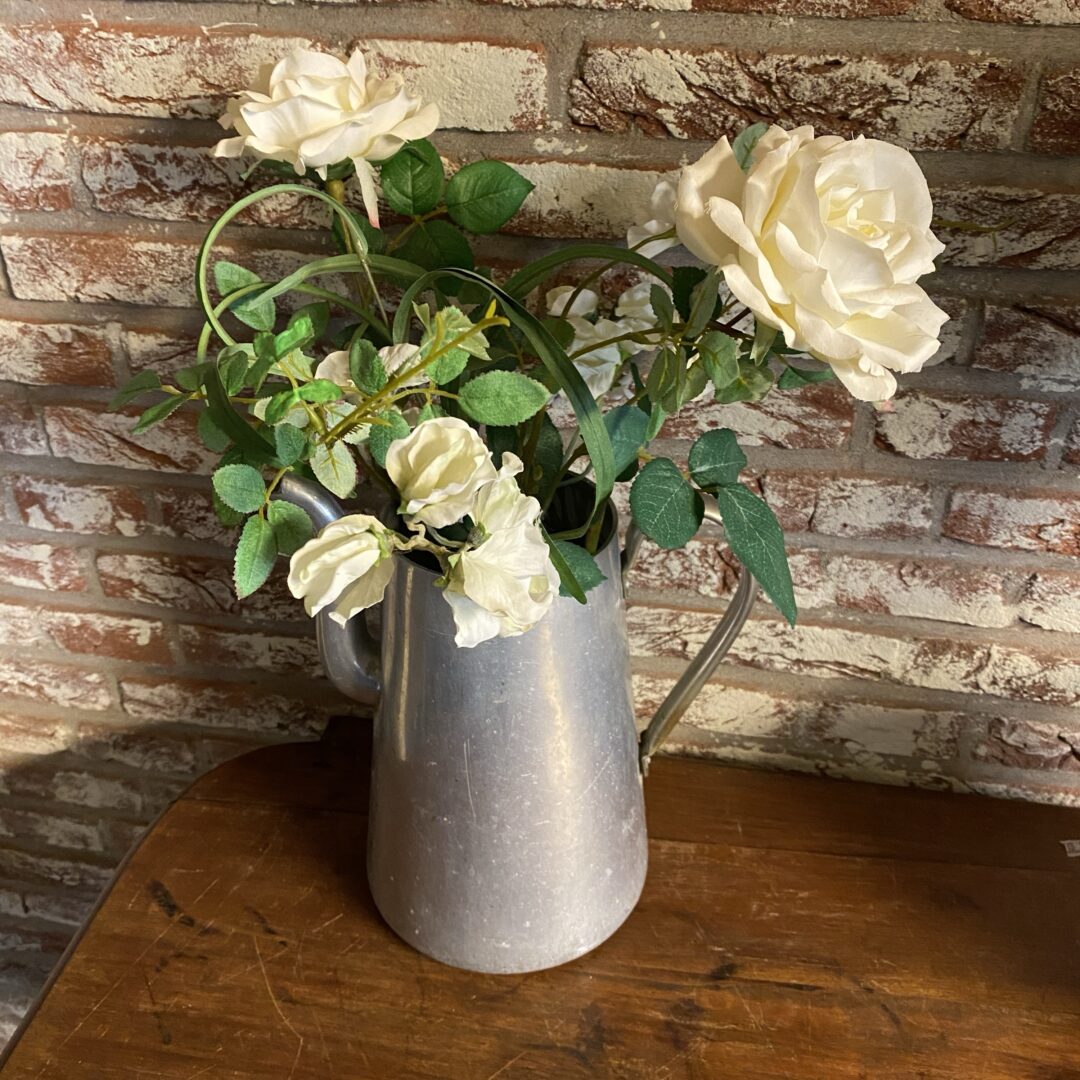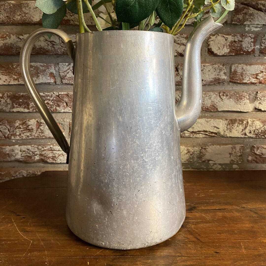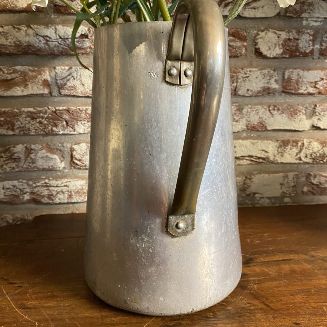 Leuke kan, beetje gebutst. Leuk met bos bloemen op de tuintafel / tafel, maar ook te gebruiken als gieter.