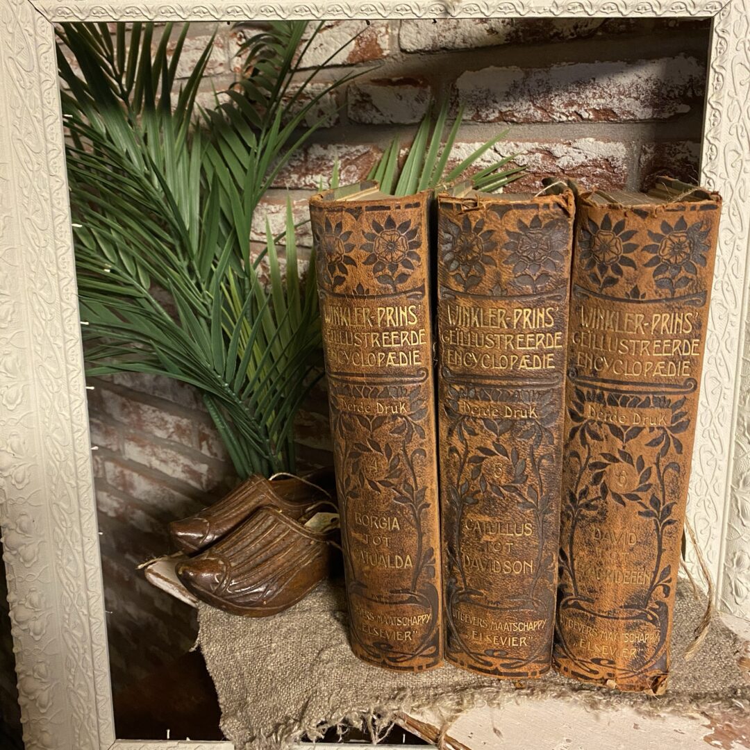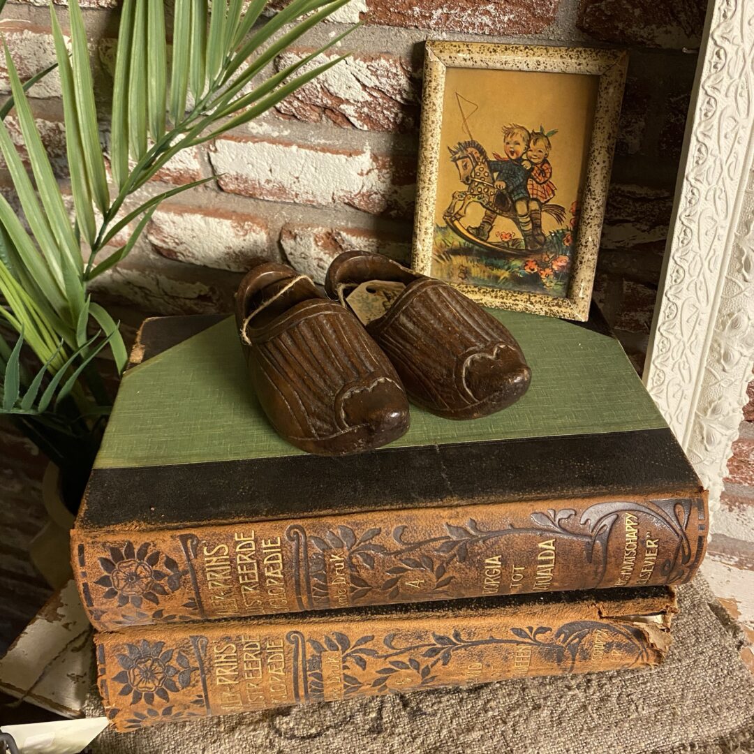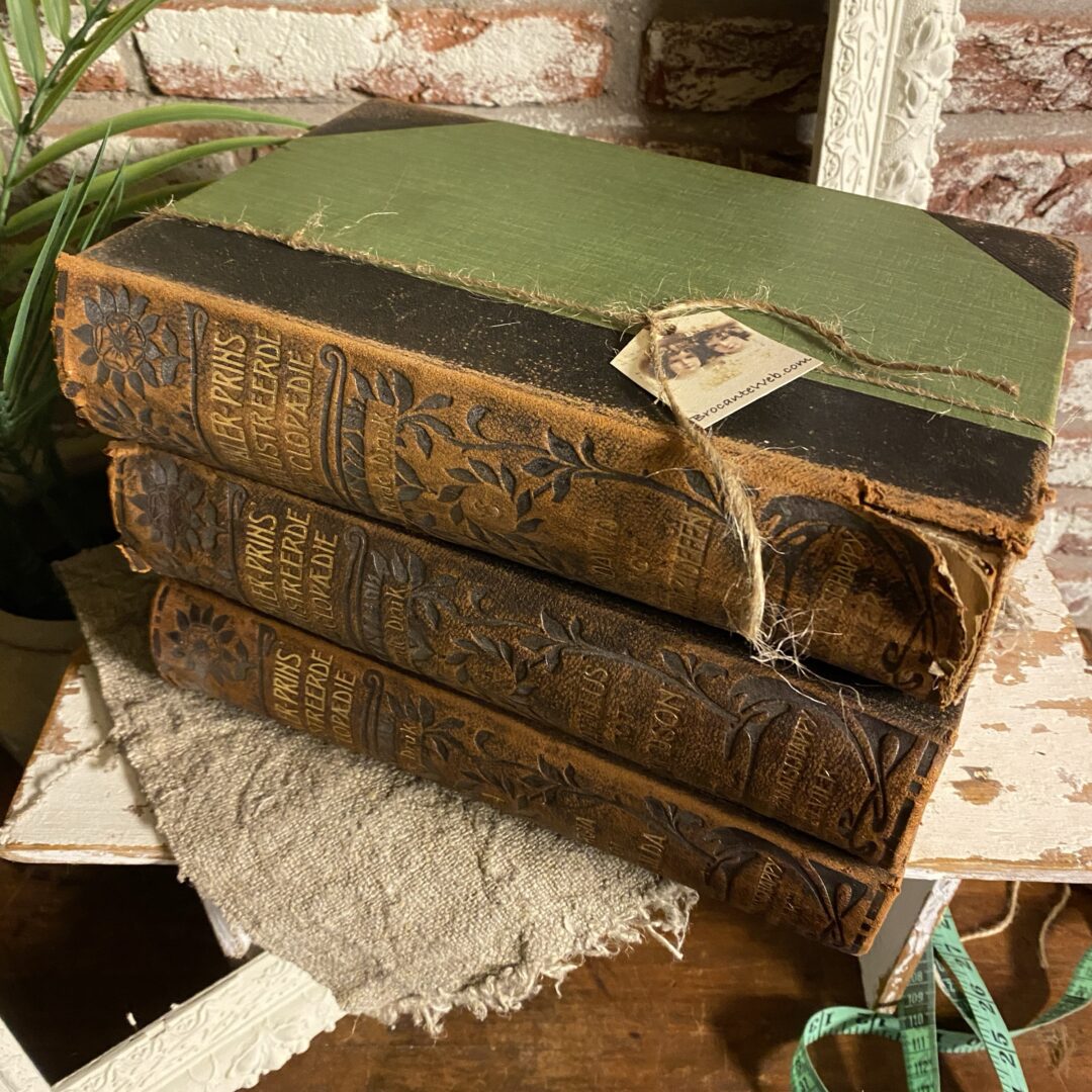 Prachtig doorleefd oud boek met een verweerde kaft en een vleugje nostalgie. Mooi om mee te decoreren op een stapeltje, onder een stolp of samen met andere brocante vondsten. Elk boek vertelt zijn eigen verhaal — ook zonder gelezen te worden.