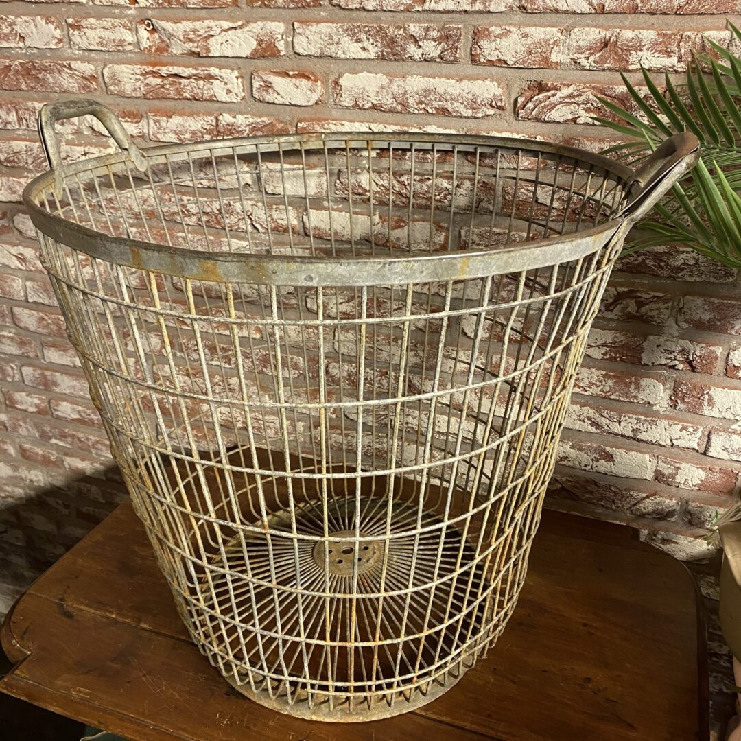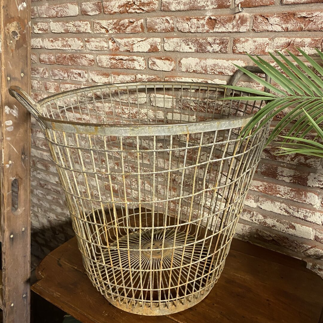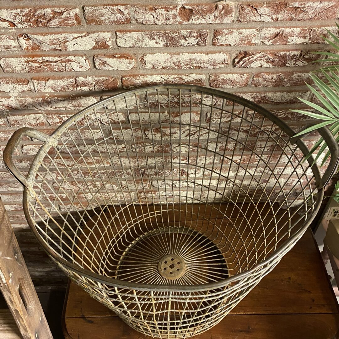 Het blijft leuk; deze mooie metalen houtmand / aardappelmand.