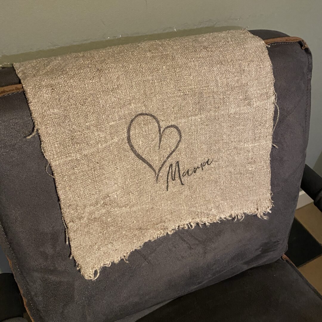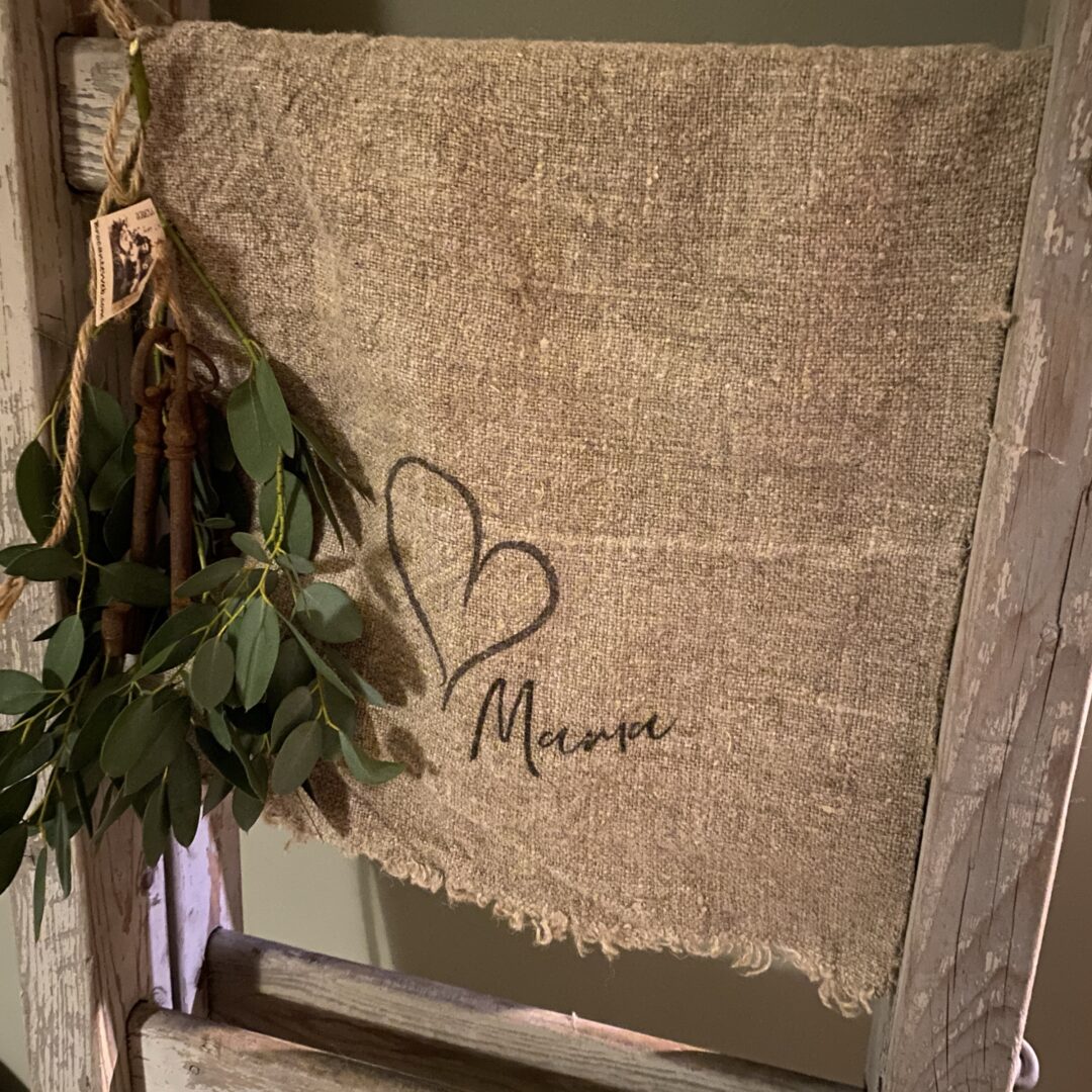 Dit stoere shabby decoratiedoek met mooie ‘I 🤍 mama’ print is leuk om te kado te geven , over een dienblad te leggen , olijfbak, kruik, ladder, trog of schaal. Ook leuk om om een toef groen heen te wikkelen.