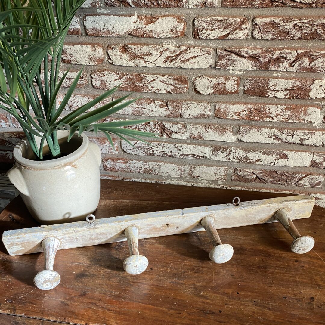 Oude sleetse kapstok met mooie lange knoppen (9cm)