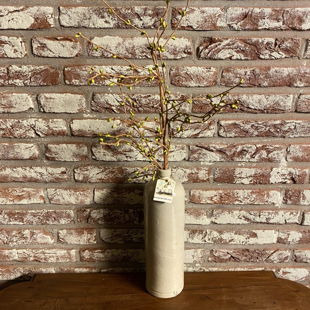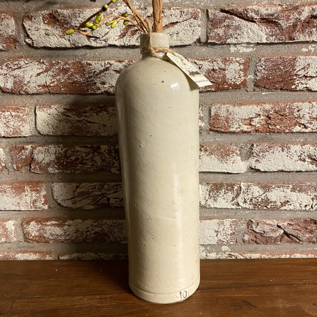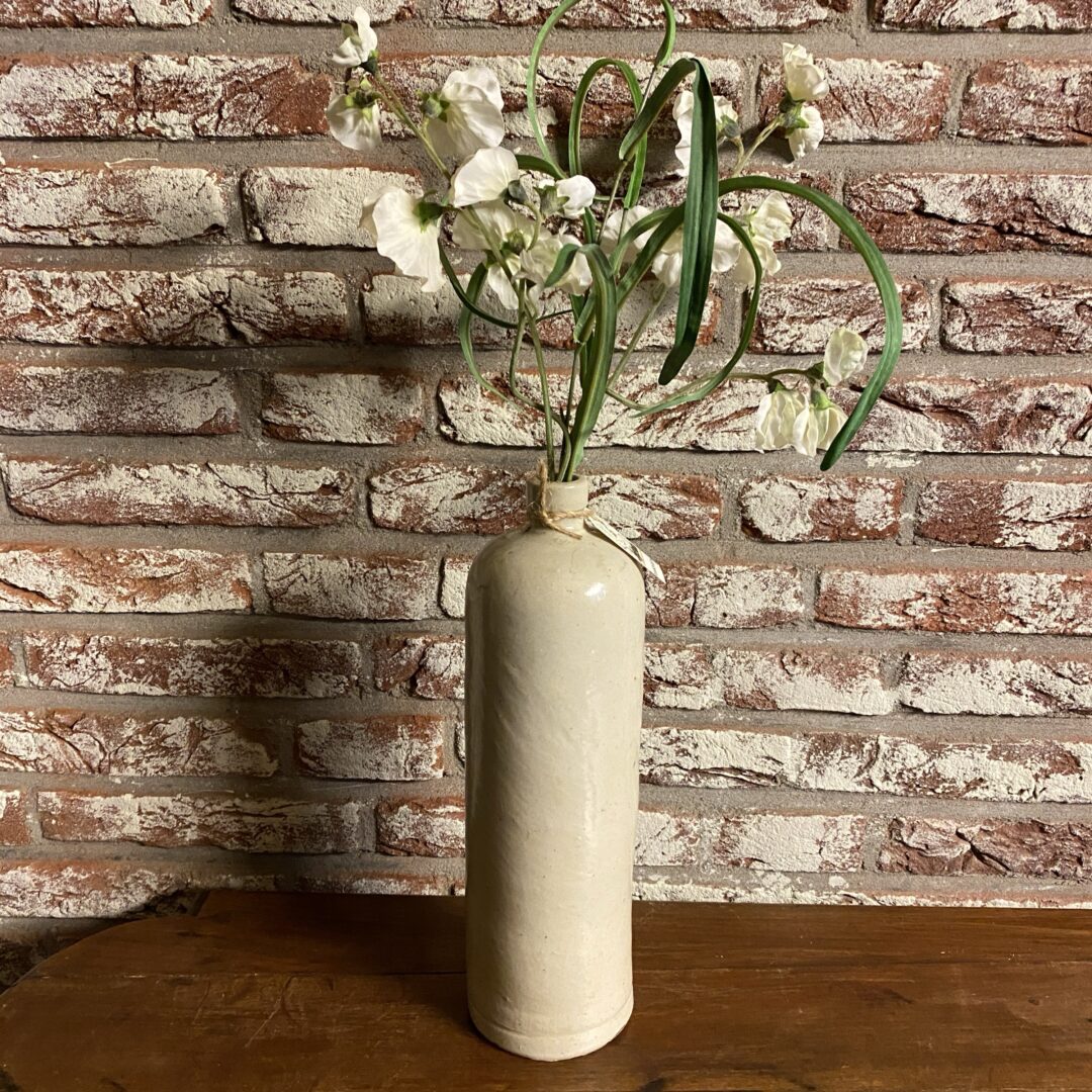 Mooie neutrale kleur fles van aardewerk. Leuk met een bloemetje erin maar kan natuurlijk ook gewoon op zichzelf staan, of in combi met grespot en greskan.